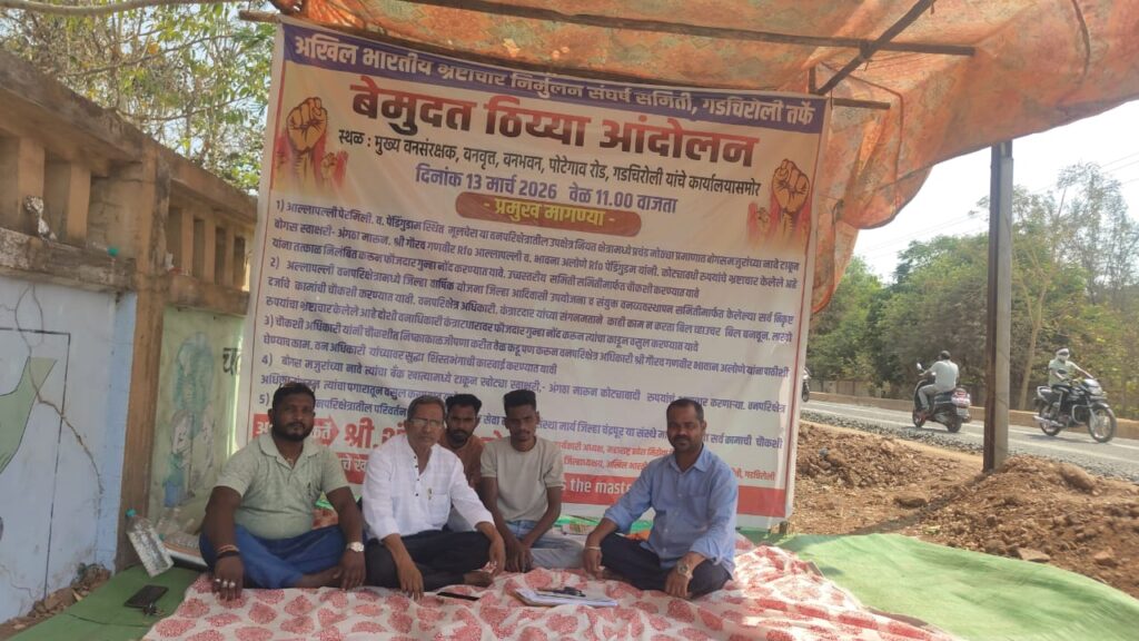 अखिल भारतीय प्रष्टाचार निमूलन संघर्ष समितीचे जिल्हाध्यक्ष शंकर ढोलगे यांनी पत्रकातुन केली असुन ते दिनांक 13 मार्च पासुन मुख्य वनसंरक्षक (प्रादेशिक ) वनवृत् गडचिरोली कार्यालया समोर उपोषणाला बसले आहेत.