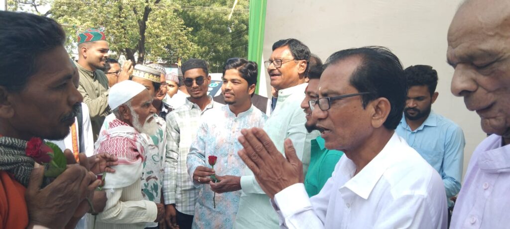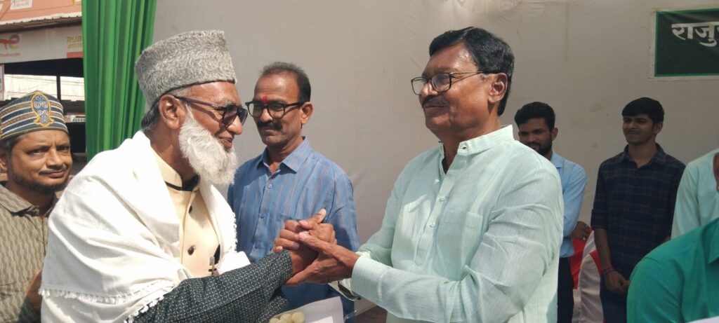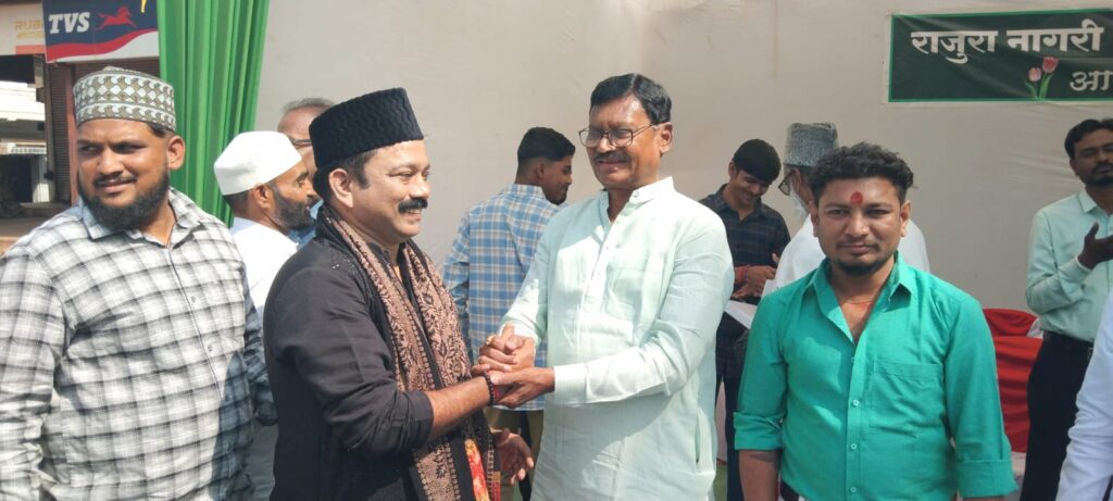 राजुरा :– पवित्र ईद-उल-फितर सणाच्या निमित्ताने राजुरा शहरात आनंद, उत्साह आणि बंधुभावाचे वातावरण पाहायला मिळाले. मुस्लिम समाज बांधवांनी पारंपरिक पद्धतीने सण साजरा करत एकमेकांना गळाभेट देऊन शुभेच्छांची देवाणघेवाण केली. या शुभप्रसंगी राजुरा नागरी सहकारी पतसंस्थेच्या वतीने उभारण्यात आलेल्या स्वागत मंडपातून काँग्रेसचे जिल्हाध्यक्ष माजी आमदार सुभाषभाऊ धोटे यांनी उपस्थित मुस्लिम बांधवांचे मनःपूर्वक स्वागत करत ईद-उल-फितरच्या शुभेच्छा दिल्या. त्यांनी समाजात ऐक्य, शांतता आणि बंधुभाव वृद्धिंगत होण्याचा संदेश यावेळी दिला.