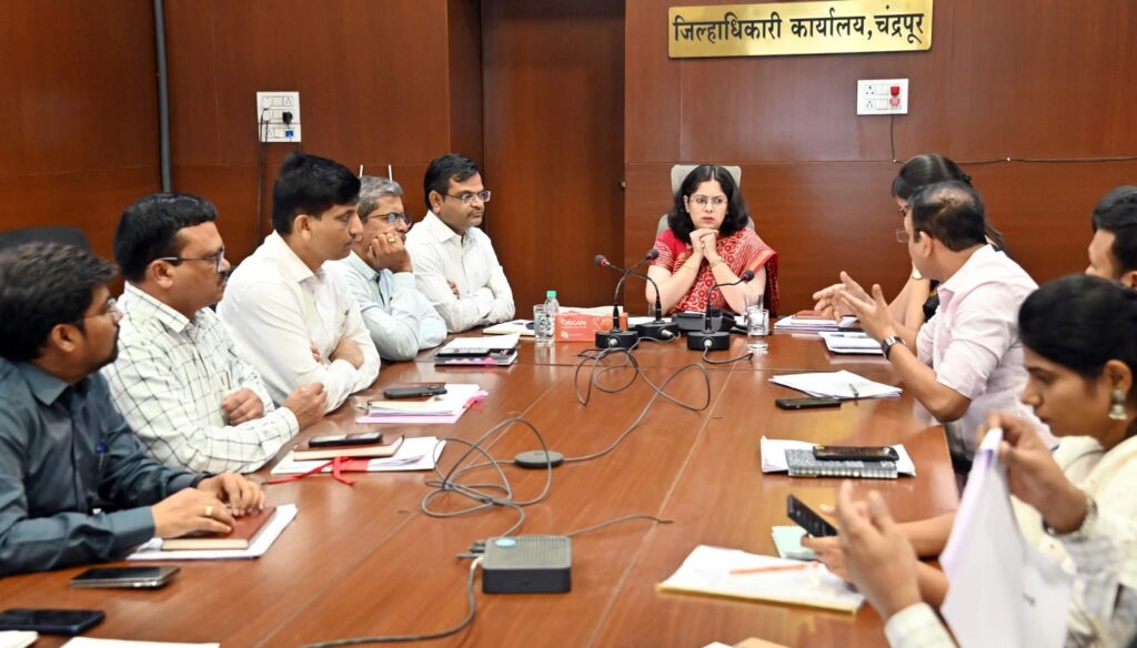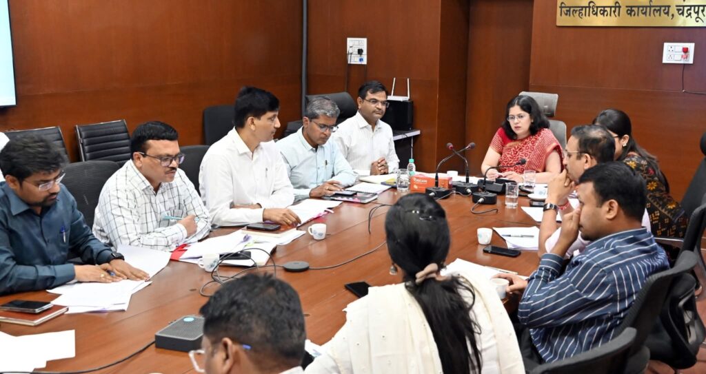 जिल्हाधिकारी कार्यालयात आयोजित या बैठकीला मनपा आयुक्त अकुनुरी नरेश, सहायक जिल्हाधिकारी लघिमा तिवारी, अतिरिक्त जिल्हाधिकारी डॉ. नितीन व्यवहारे, निवासी उपजिल्हाधिकारी दगडू कुंभार, उपजिल्हाधिकारी संजय पवार, उपमुख्य कार्यकारी अधिकारी (सामान्य) नुतन सावंत, उपविभागीय अधिकारी विशालकुमार मेश्राम (चंद्रपूर), संदीप भस्के (वरोरा), अजय चरडे (मुल), पर्वणी पाटील (ब्रम्हपुरी), अर्जुन पावरा (बल्लारपूर), किशोर घाटगे (चिमूर) यांच्यासह सर्व तहसीलदार उपस्थित होते.