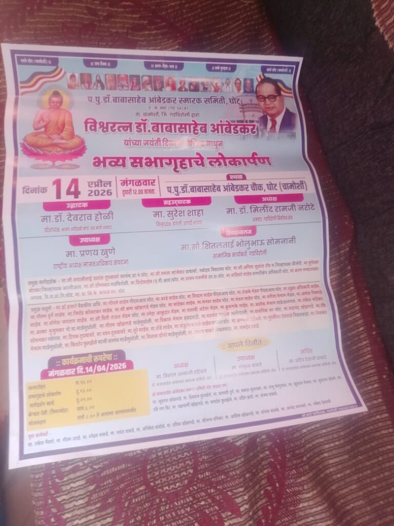 गडचिरोली :–विश्वरत्न डॉ. बाबासाहेब आंबेडकर यांच्या जयंती निमित्त चामोर्शी तालुक्यातील घोट येथील डॉ. बाबासाहेब आंबेडकर पुतळा जवळील बांधण्यात आलेल्या भव्य सभागृहाचे लोकार्पण सोहळा दि. १४ एप्रिल 2026 ला दुपारी १२ वाजता उदघाटन सोहळा आयोजित करण्यात आलेला आहे.