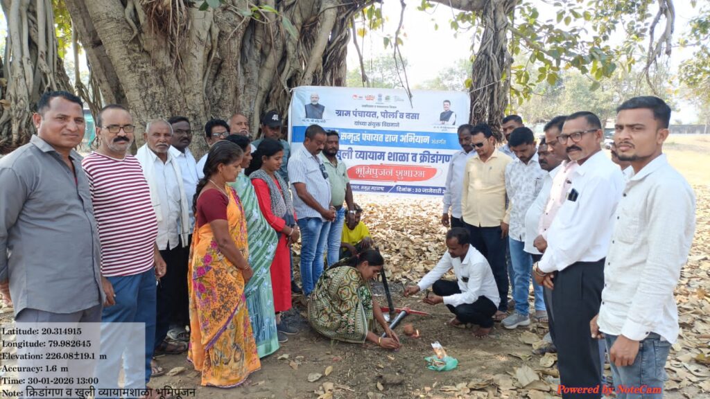 गडचिरोली:-ग्रामपंचात पोर्ला व वसा यांच्या संयुक्त विद्यमाने मुख्यमंत्री समृद्ध पंचायत राज अभियान अंतर्गत खुली व्यायामशाळा व क्रिडांगणाचे भुमिपुजन पोर्ला ग्रामपंचायत च्या सरपंच निवृत्ताताई राऊत व वसाचे सरपंच मुखरुजी झोडगे यांचे हस्ते पार पडले.